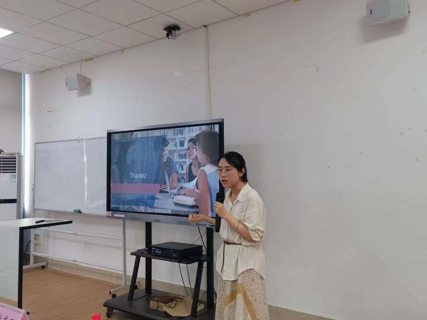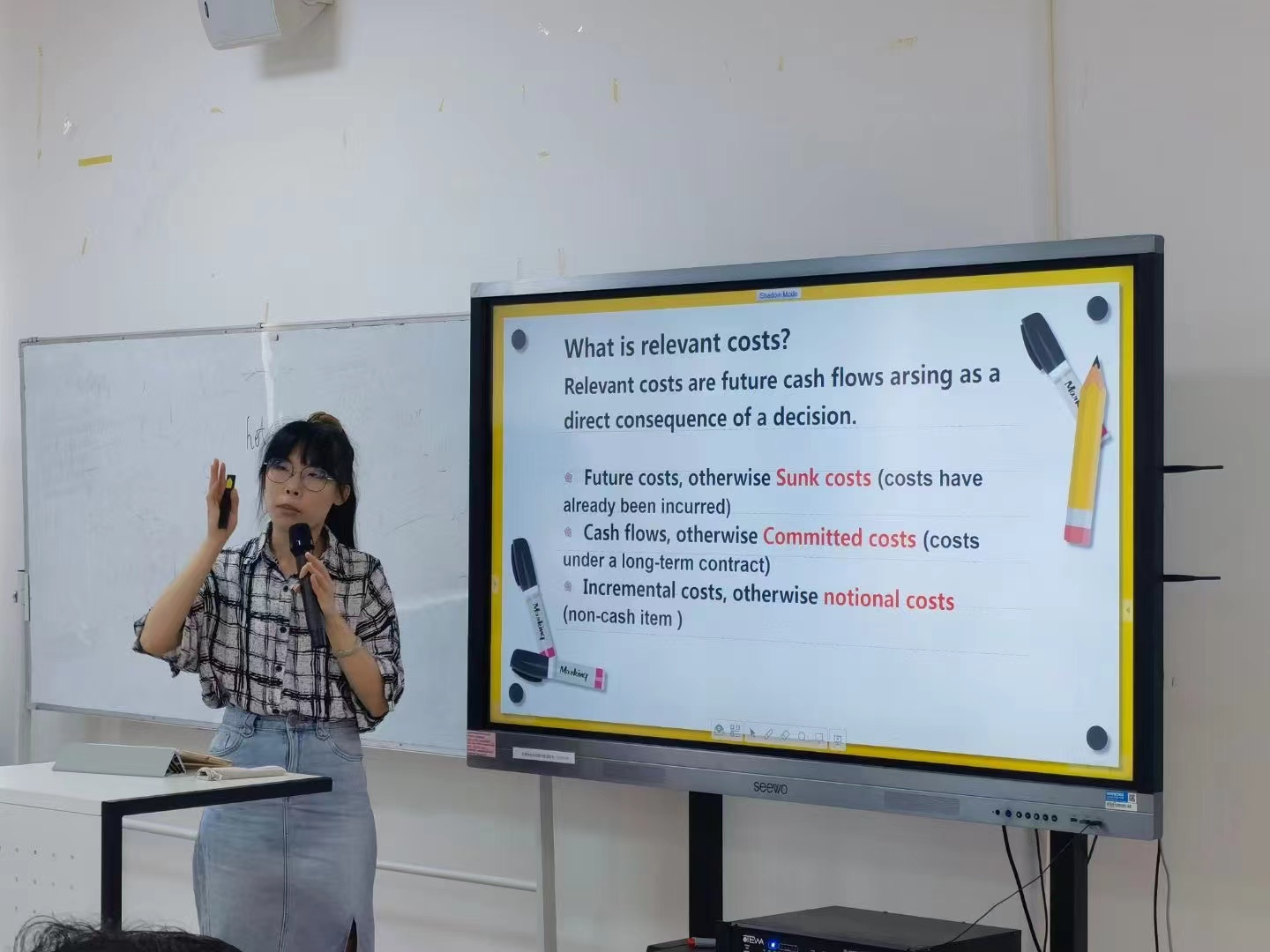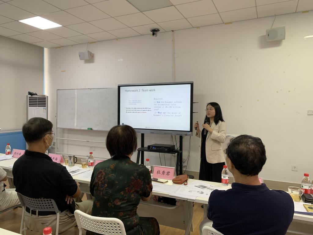 吕晓玥老师的参赛课程是《Foundation of management accounting》(基础管理会计)。吕老师首先介绍了管理会计的特点和学科地位,用生活中的例子让大家了解管理会计工作,随后,吕老师从教学方法、教学目标、教学重难点等方面进行了教学展示。