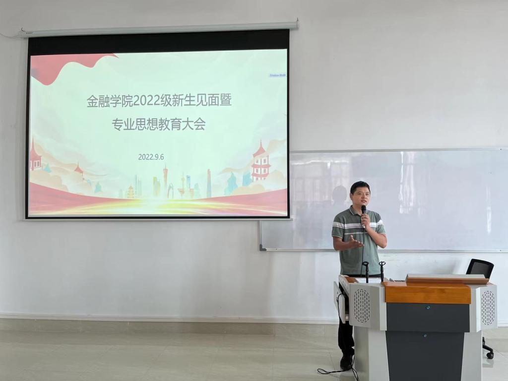 金融工程系副主任荣佳、经济与金融系副主任魏攀、金融科技系副教授李战国,分别为22级新生进行了专业教育。