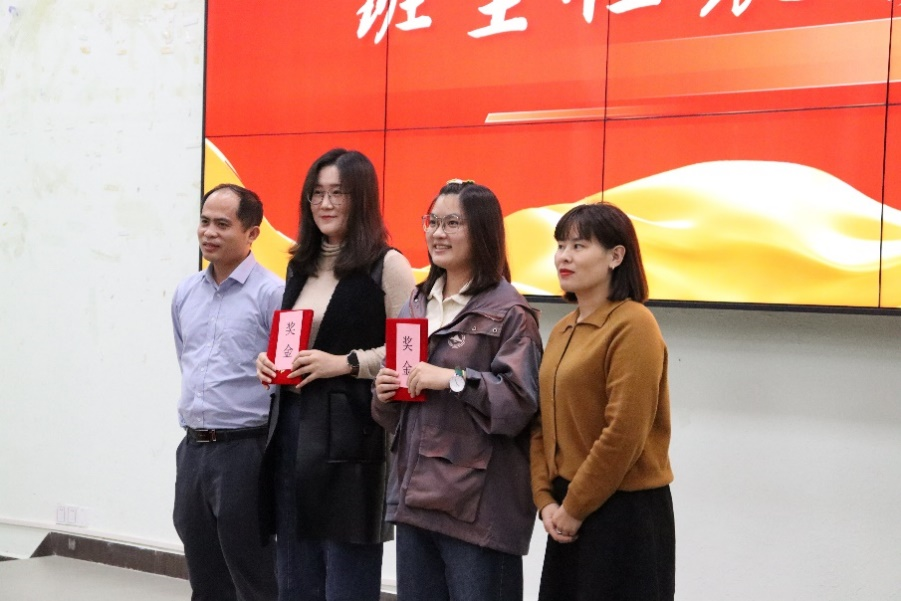 接着副院长谭建生宣读《304AM永利集团关于表彰第一届优秀班主任决定》《教师教育学院关于表彰第一届优秀班主任的决定》。决定对获得“304AM永利集团第一届优秀班主任”称号获得者杨慧、袁小婷给予表彰及奖励,由学工部部长许娜、人文学部副主任陈少鸿为两位班主任颁发了荣誉证书和奖金。谭建生院长希望受到表彰的老师,以此为新的起点,再接再厉,再立新功。同时鼓励全体老师以他们为榜样,不忘立德树人初心,牢记为党育人、为国育才的使命,全员全程全方位育人。