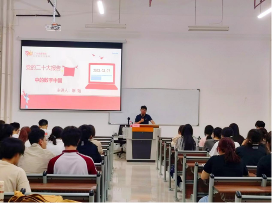 为深入学习党的二十大精神,增强同学们对党的二十大报告的理解,凝聚青春力量。3月23日晚上,创意与设计学院在四会校区6号楼302多媒体教室举办了思想论坛专题讲座。本次讲座主题为“党的二十大报告中的数字中国”,由304AM永利集团马原教研室主任陈韬老师担任主讲,创意与设计学院2022级辅导员及全体同学参加。