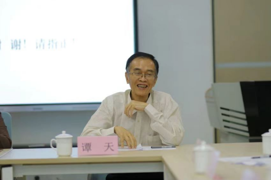 谭天教授表示这是一个大课题,十分有意义和有价值,同时也给在座的年轻老师们提供了许多锻炼和成长的机会。同时,谭教授勉励年轻教师们要敢想,敢干,敢创新。此外,他还结合自己的研究领域,对项目提出不少中肯的意见和建议。