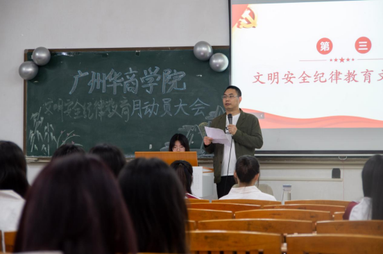 管理学院院长助理袁仕海博士宣读了文明安全纪律教育文件,让同学们更加清晰教育月的主题、总体安排和活动要求、促进其养成良好的学习和行为习惯,形成良好的校风、学风、班风,积极评优评先。