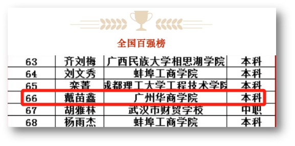 戴苗鑫同学入围个税师百强榜