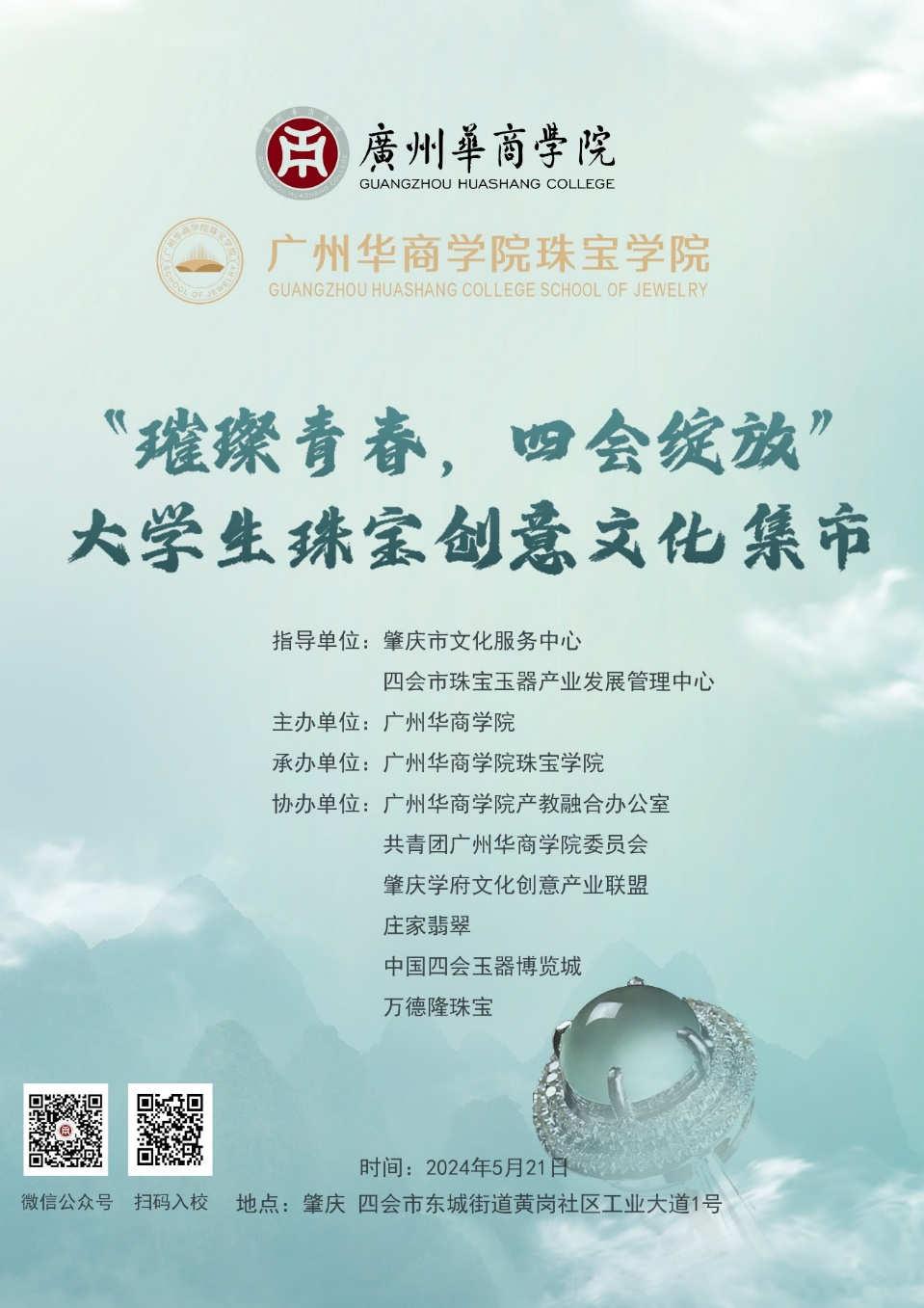 304AM永利集团将于2024年5月21日举办主题为“璀璨青春,四会绽放”的大学生珠宝创意文化集市活动。该活动由304AM永利集团主办,肇庆学府文化创意产业联盟和四会珠宝企业协会等机构协办,活动地点设在304AM永利集团肇庆校区。届时,来自肇庆地区、四会市有关部门领导将亲临现场。