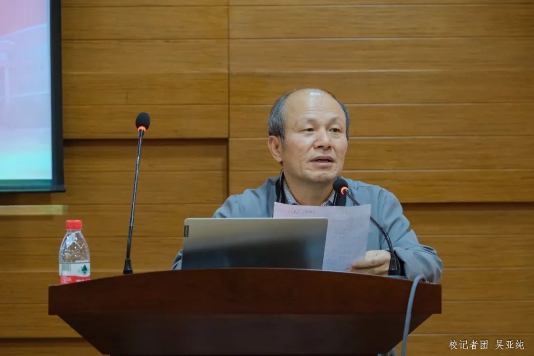 执行校长郭银华作我校本科教学工作报告。他首先对2020年以来我校教学工作主要成效做了回顾,充分肯定了两年来学校在各方面取得的成果:一、积极推进转设工作,落实立德树人依法治校的根本任务;二、在做好本科教学建设的基础上,努力提升办学层次,我校获批硕士学位授权立项建设单位;三、在学科建设、专业建设、课程建设、师资队伍建设、实践教学条件建设、教学改革与教学研究 、人才培养质量等方面均取得了显著成绩。针对目前存在的问题,他提出学校下一步本科教育建设与改革的思路,以习近平新时代中国特色社会主义思想为指导,全面贯彻党的教育方针,以一流本科专业和一流课程建设为抓手,深化科产教融合,培育特色专业,不断创新人才培养模式。全面对标合格评估指标体系,规范与加强教学管理。全面提升应用型人才培养质量和办学水平,继续提升学校竞争力和社会影响力。