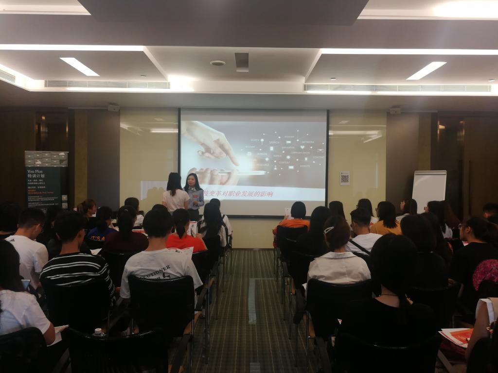 随后,经理许春燕和You Plus校友Ancy围绕“如何实现从校园职场的跨越”的话题进行个人经历分享,为同学们提出了具有针对性、建设性的建议。同时详细介绍了包括实案咨询、直击职场、职业发展、自我成长和成功沟通五大核心课程模块的You Plus Anchor提升营的具体情况。