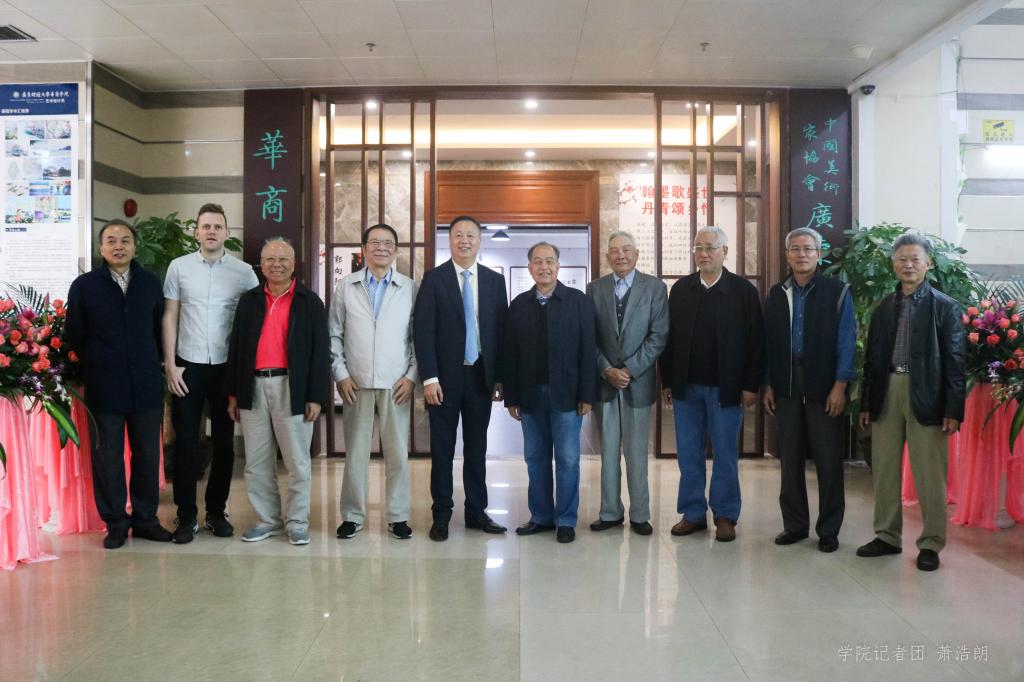 12月24日上午,《心系荔乡》——郭向阳、华同旭、骆小民、刘和龙书法作品展在我校美术馆隆重开幕。中国人民解放军军事科学院研究部部长吴正宏少将、中国艺术协会名誉主席温尚光、广州市原副市长郭向阳、广州市教育局原局长华同旭、原增城市委副书记、市长骆小民、广州市林业和园林局原巡视员刘和龙、华商教育集团董事长廖榕就及夫人陈练瑛女士、广东财经大学华商学院副校长王列耀、美国学者Mike以及我校领导和师生代表出席了本次开幕式。开幕式由王列耀副校长主持。